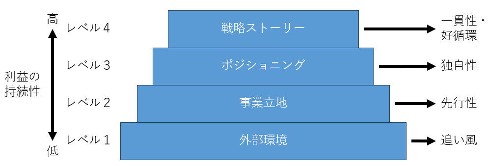 ここで楠木氏は利益の源泉の階層として、上図のように示し、以下のように本書の中で説明しています。